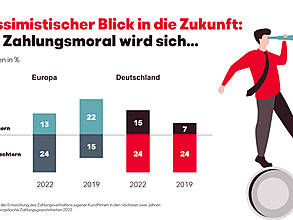 Als Folge dieser Zahlungsverzögerungen gaben europäische Unternehmen an, am häufigsten selbst mit Liquiditätsengpässen (42 Prozent) sowie Gewinneinbußen (51 Prozent) zu kämpfen. Dadurch musste knapp ein Drittel der Unternehmen ihre Investitionen reduzieren (30 Prozent) und Preise erhöhen (28 Prozent). Entsprechend pessimistisch blicken die Unternehmen in die Zukunft. So gehen in Europa und Deutschland je 24 Prozent der Befragten davon aus, dass sich die Zahlungsmoral negativ entwickeln wird. „Dass sich die Zahlungsmoral deutlich verschlechtert hat, ist beunruhigend – gerade, weil wir angesichts aktueller Wirtschaftszahlen und der hohen Inflation mit einem weiteren Rückgang des Zahlungsniveaus rechnen müssen“, kommentiert Marwin Ramcke, CEO der EOS Gruppe.