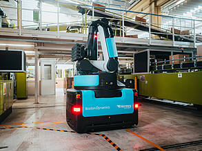 In addition to Stretch, the four-legged mobile robot Spot from Boston Dynamics is already successfully in use at the Otto Group. Spot assists with tunnel inspections and preventive maintenance activities for operational facilities, including thermal monitoring, reading analog measuring devices, and acoustic detection of noise anomalies as well as air and gas leaks.